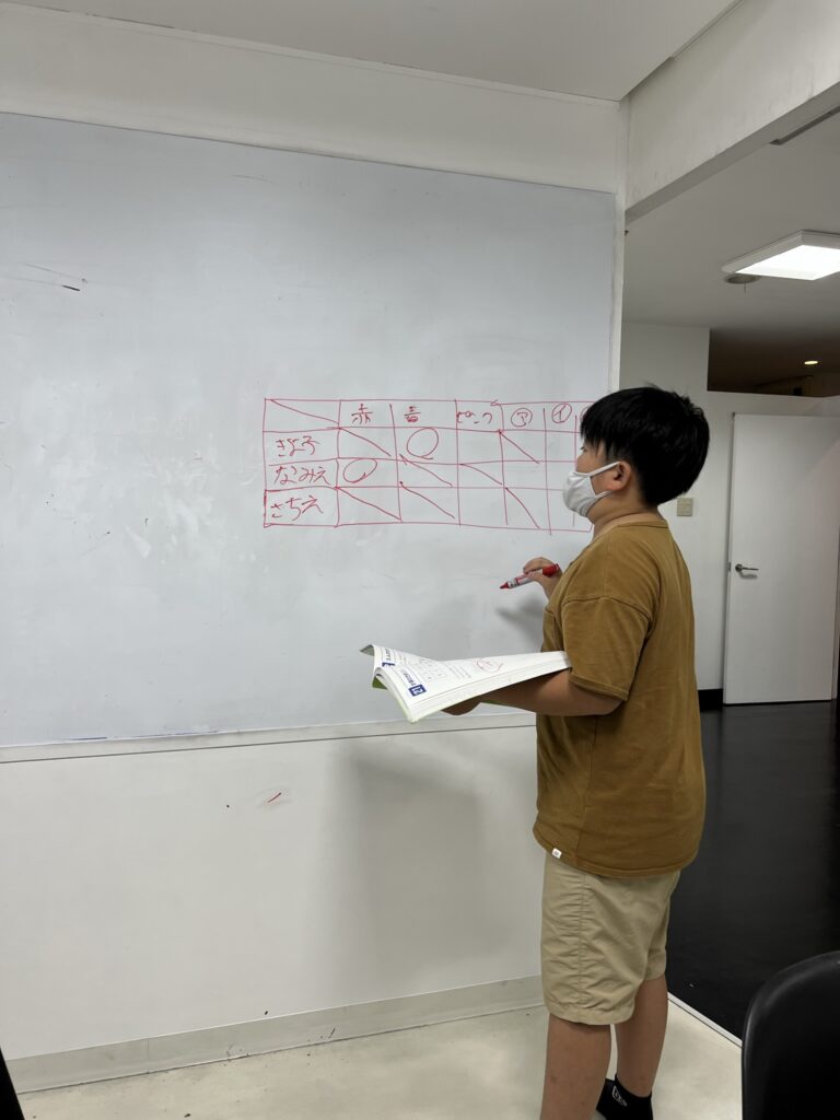 2022.11.02 manaweb算数! 今日はプレゼンの様子を☆ manaweb算数の時間は、 解いた問題をプレゼンしてもらいます! もちろんホワイトボードをつかって、 そのときに塾生は絵を描いて説明してもらいます! 絵の質をこだわる必要はありませんが、 そ... -